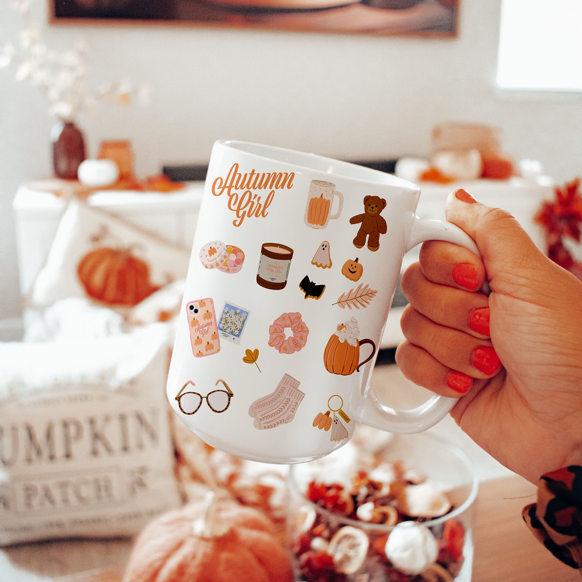Dette Autumn Girl-kruset er ALT. Med sitt estetiske design og varme høstfølelse er det perfekt for lange morgener, chunky strikkegensere og din favorittserie i bakgrunnen. Laget for deg som lever for høsten og elsker ü holde sesongen i begge hender.