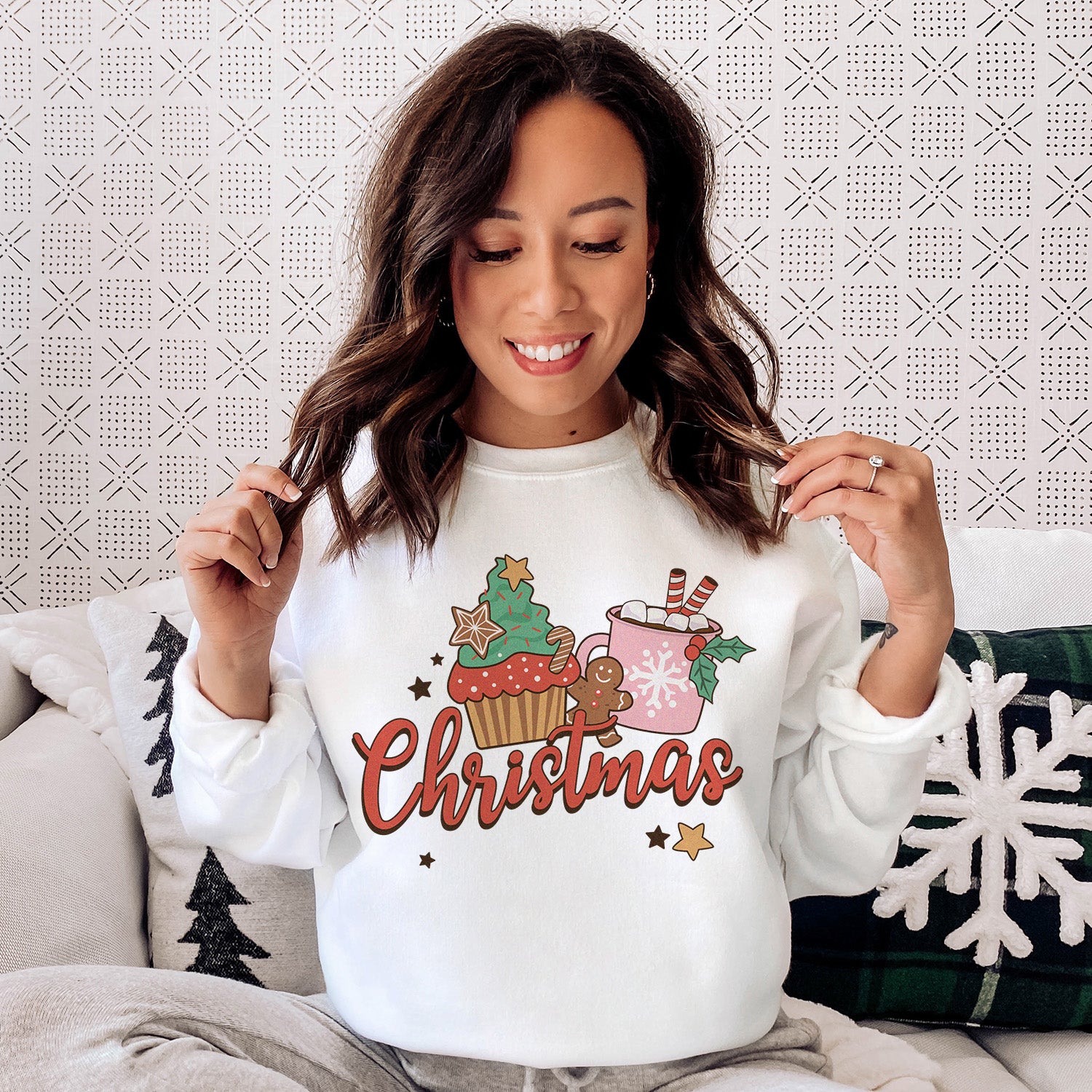Julegenser med julemotiv foran, børstet innside og rund hals. Gå 1-2 størrelser opp for en oversized stil.