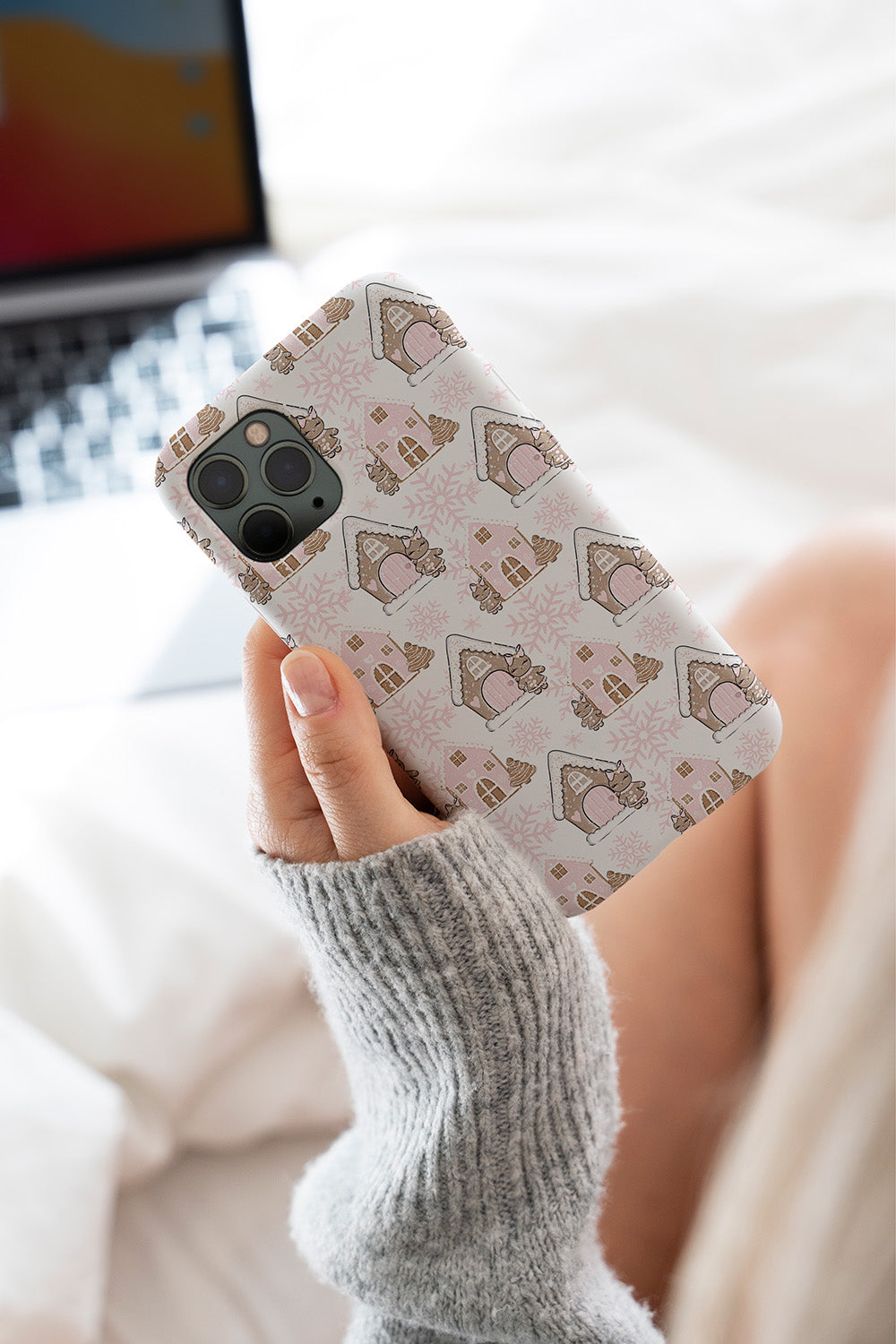 Pink Christmas iPhone mobildeksel har et omsluttende og slim design.