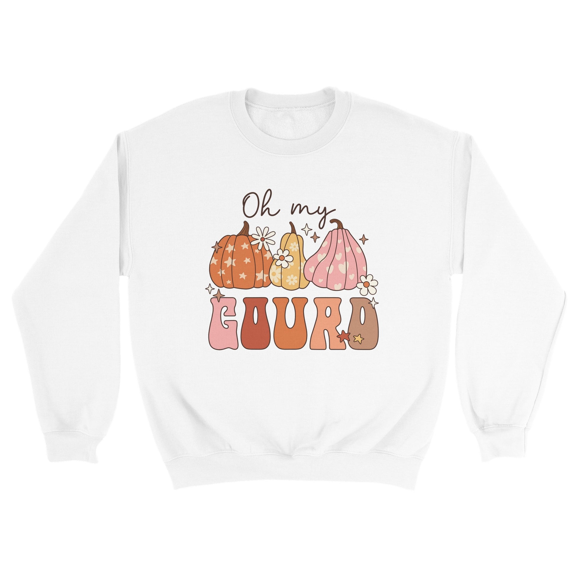 Retro Høstgenser med fargerikt motiv, rund hals og lange ermer.