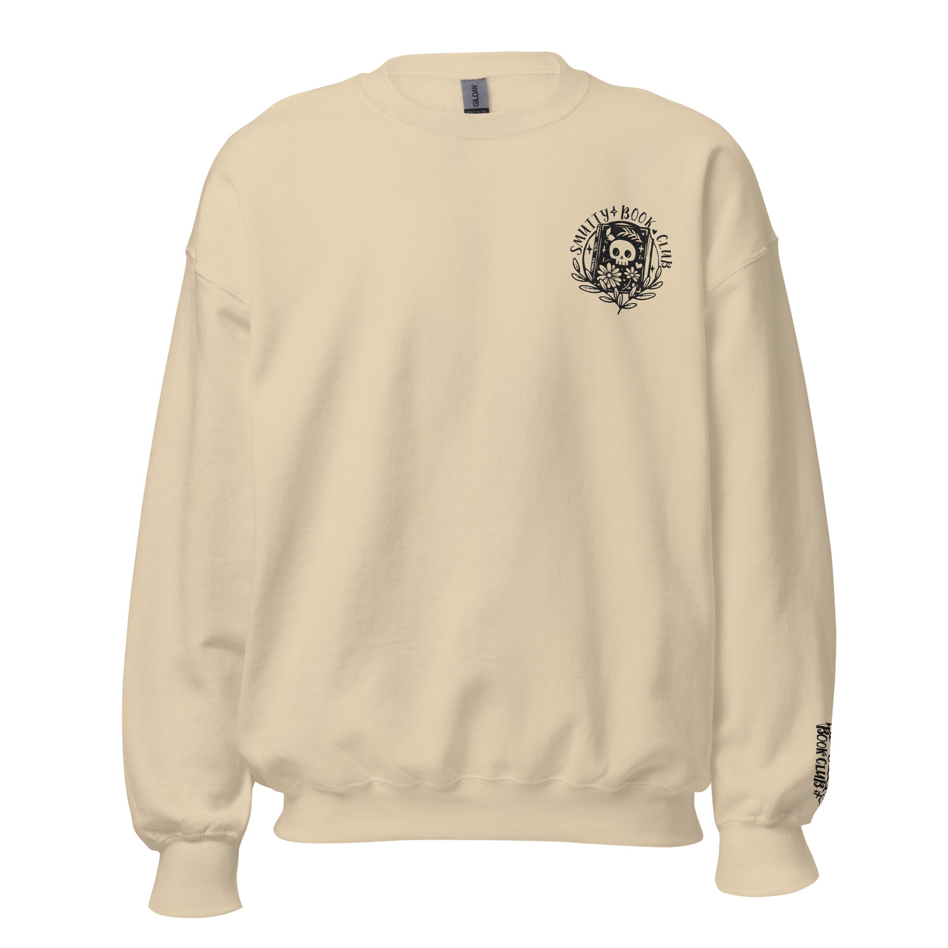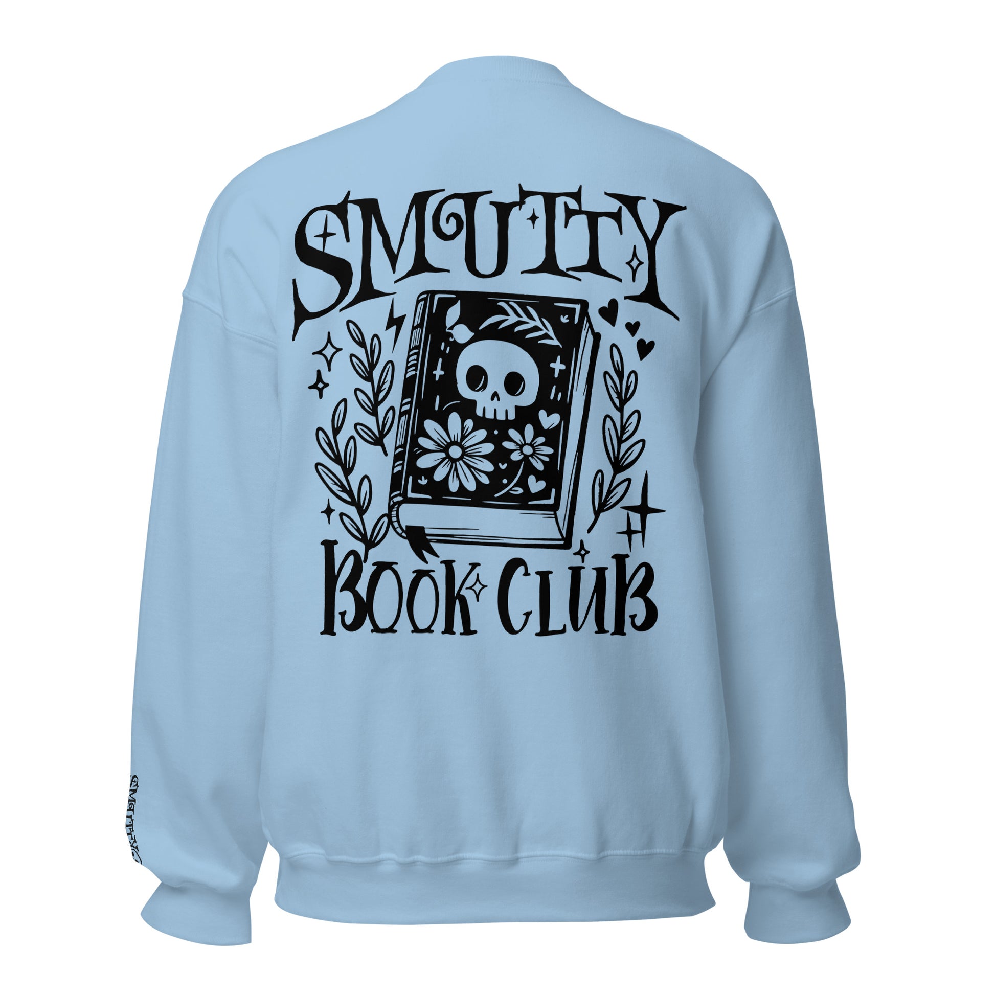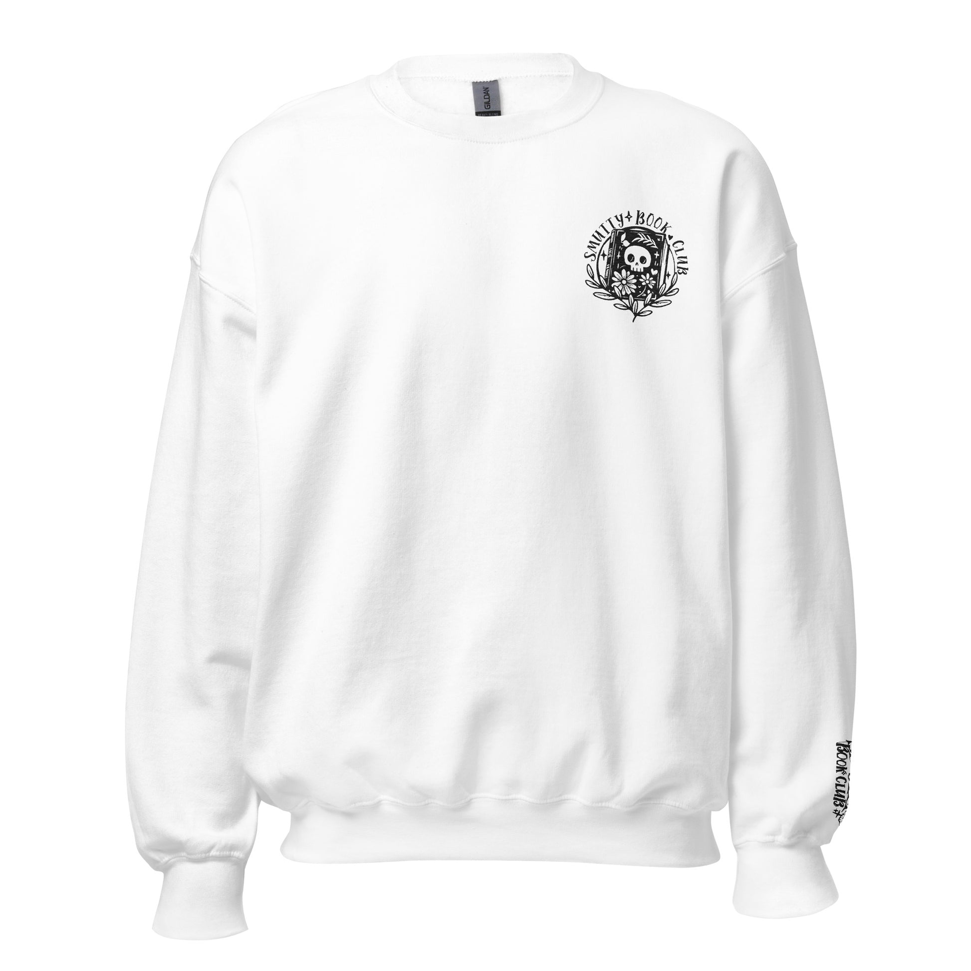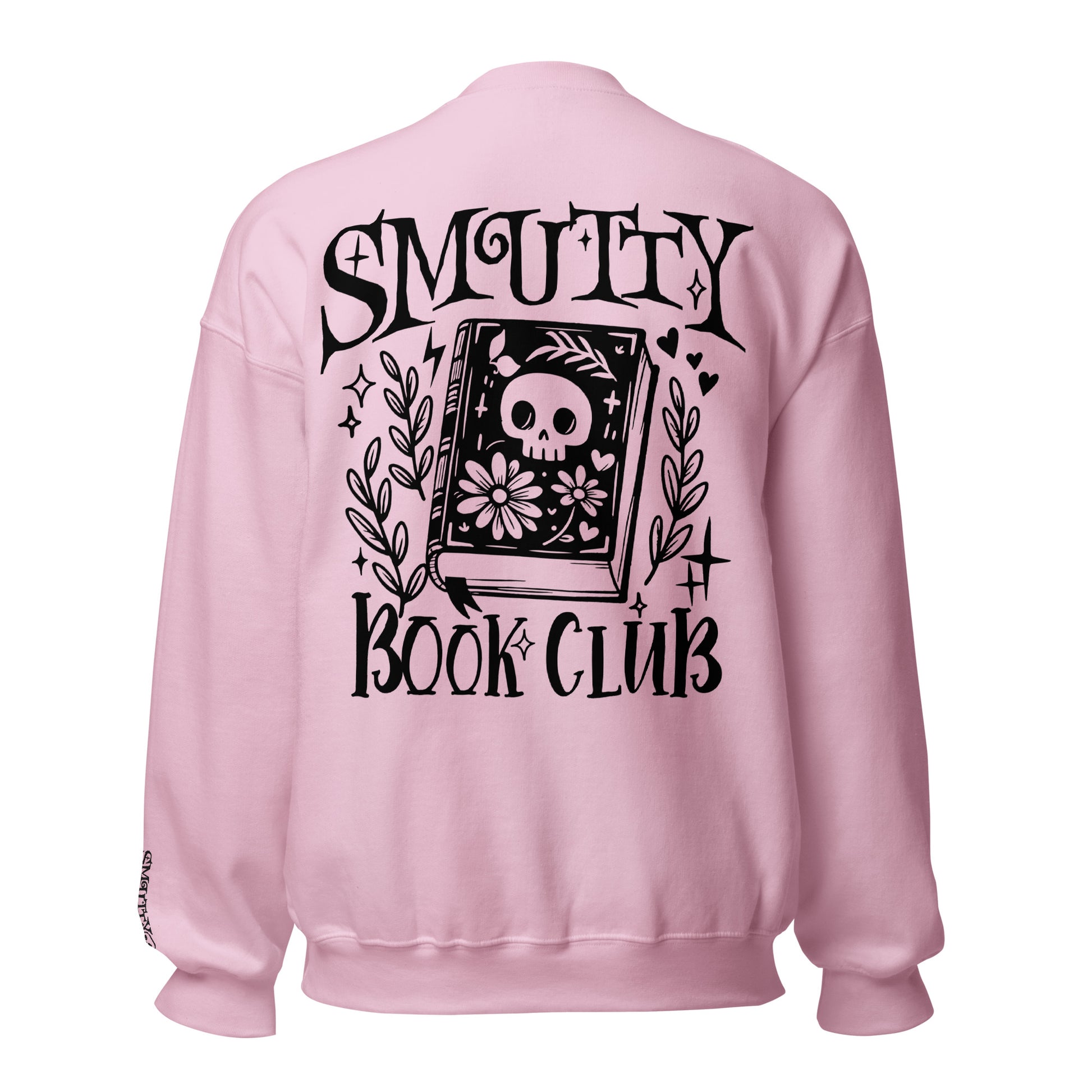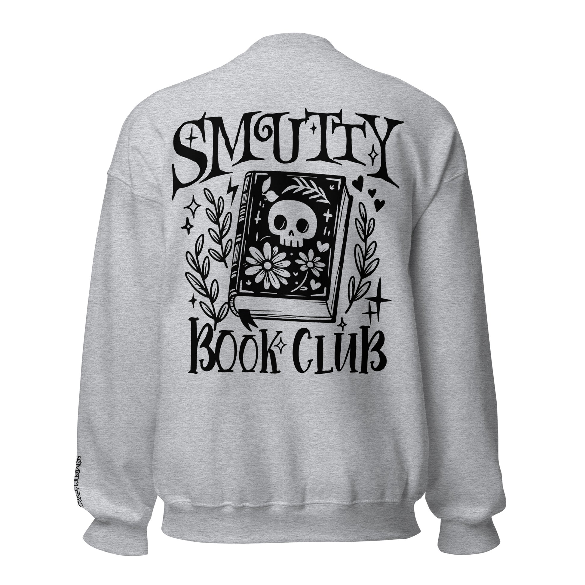 Smutty Book Club Sweatshirt med broderi på bryst og håndledd. Stort print på ryggen. Normal størrelse.