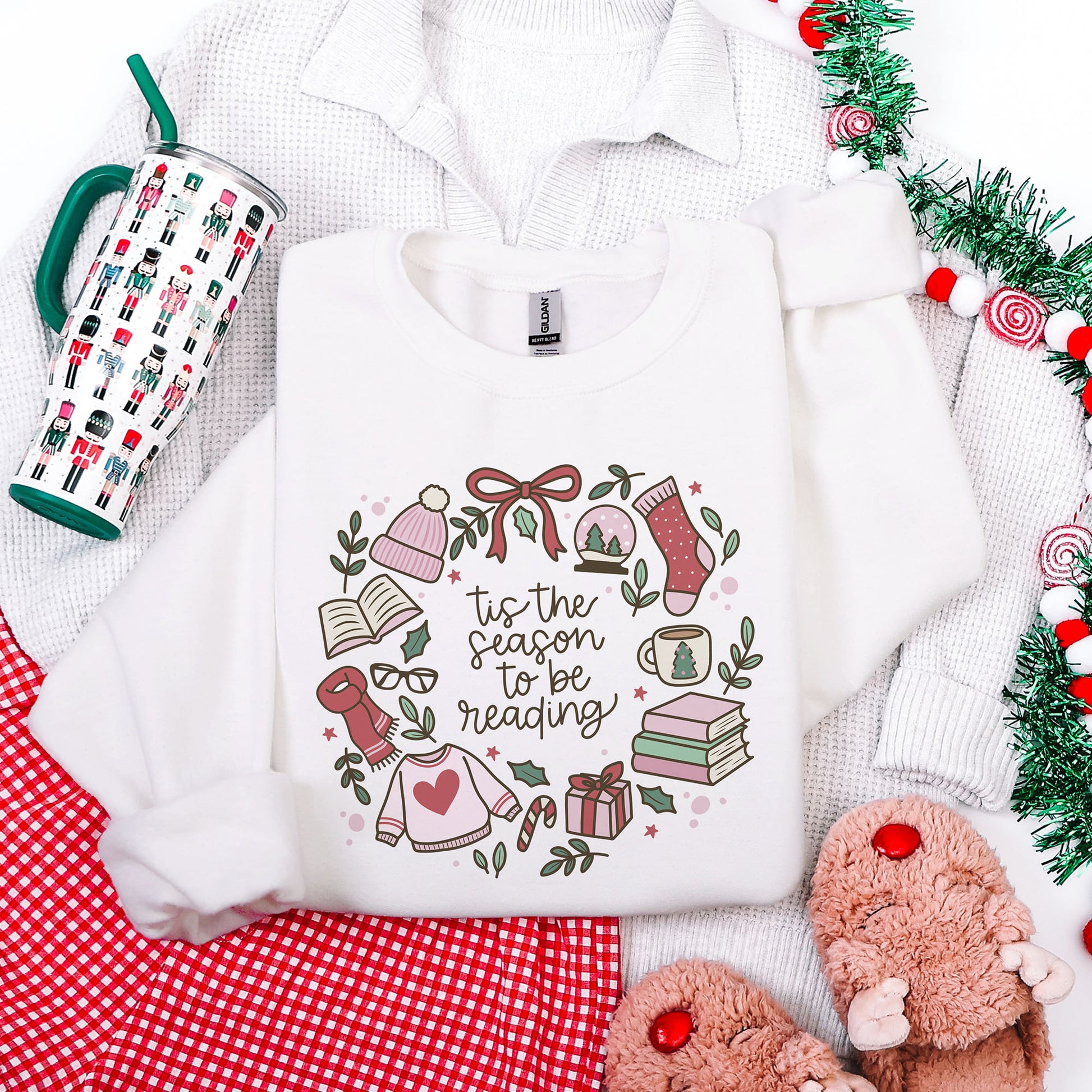Søt og cozy BookTok-julegenser med et sjarmerende motiv og teksten ’tis the season to be reading. Perfekt for bokelskere som elsker julekos, lesestunder og varm kakao. Myk passform og ekte christmas vibes. Ideell for deg som søker bookish julegenser, booktok sweater, juleklær for bokelskere og cozy christmas outfit.